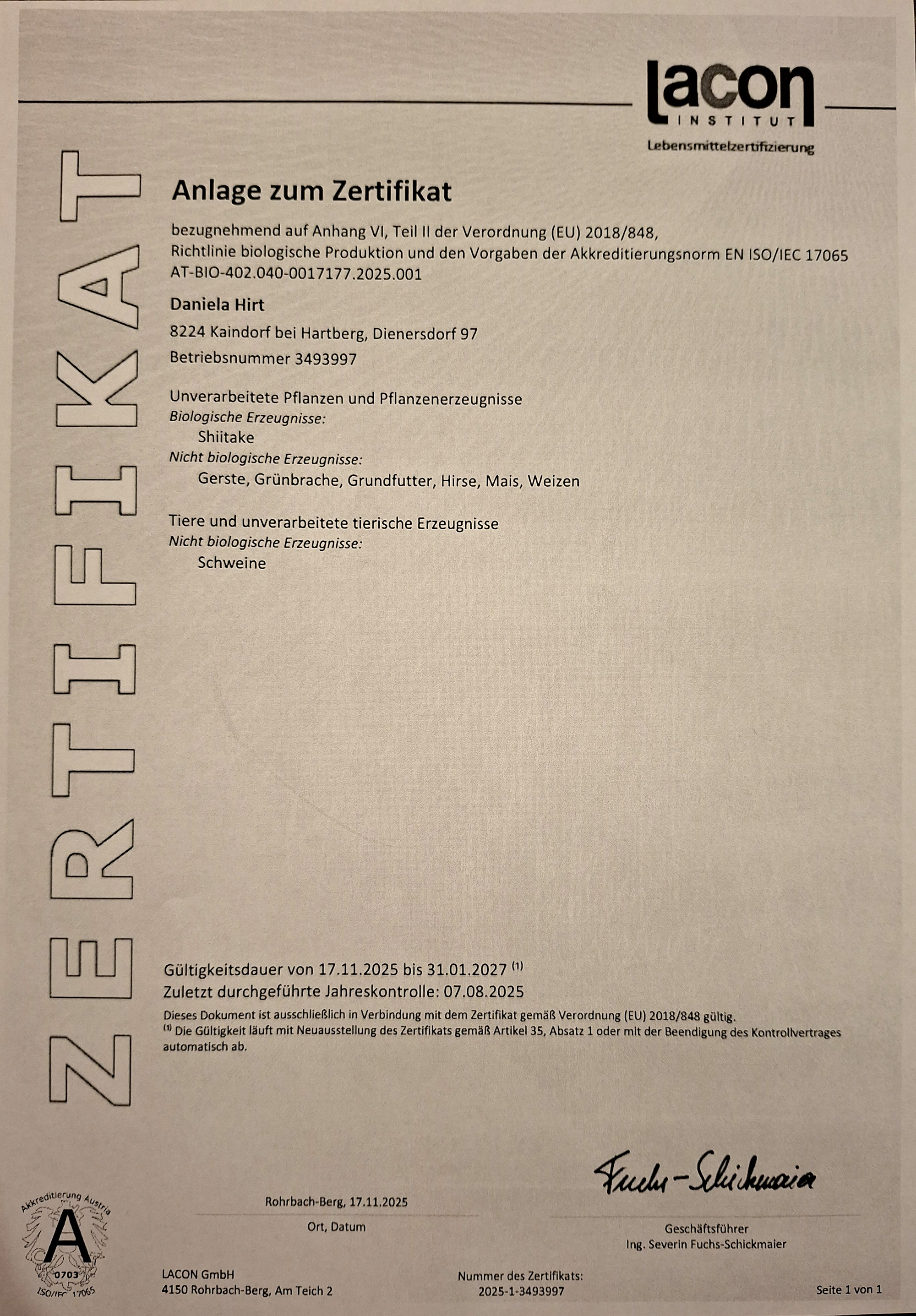 Regelmäßige Kontrollen durch das unabhängige Institut für Lebensmittelzertifizierung "Lacon" garantieren Ihnen echte Bio-Qualität. Aber für uns geht Bio noch weiter. Durch die Produktion mit nachhaltigen Ressourcen wird das Lebensmittel noch wertvoller.